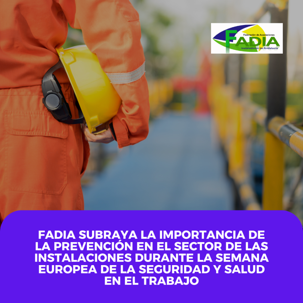 Con motivo de la Semana Europea de la Seguridad y Salud en el Trabajo, que se celebra entre el 20 y el 26 de octubre, la Federación de Asociaciones de Instaladores de Andalucía (FADIA) pone en valor la importancia de la prevención de riesgos laborales (PRL) en el ámbito de las instalaciones eléctricas, fontanería, gas, climatización, calefacción, refrigeración y otras especialidades técnicas.