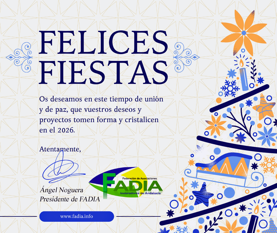 Desde FADIA queremos trasladar nuestro más sincero agradecimiento a todos los profesionales, empresas y entidades públicas y privadas que, a lo largo de este año, han contribuido al fortalecimiento del sector del instalador en Andalucía.
